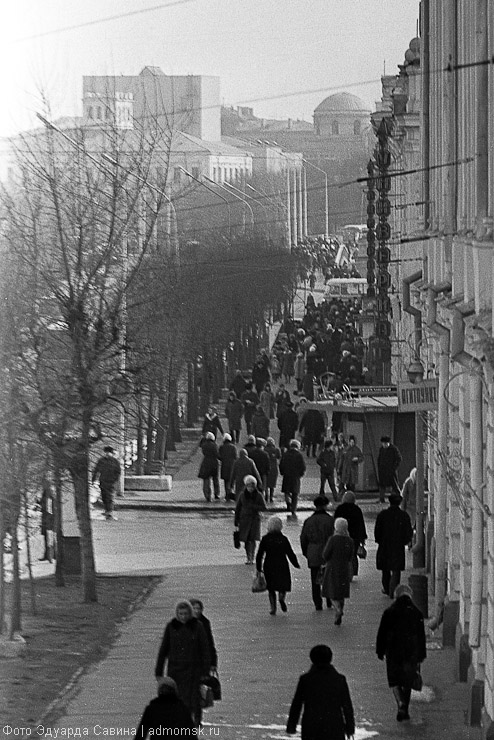 Фотокорреспондент «Вечернего Омска» Эдуард Савин (1925–2014) был известен прежде всего как мастер репортажа и портрета. Редко на его снимках можно было увидеть городские пейзажи. Тем интереснее познакомиться с небольшой по объёму частью архива фотографа, в которой запечатлён собственно Омск: как правило, динамичный, многолюдный — такой, каким его отразила камера маститого журналиста-репортажника.