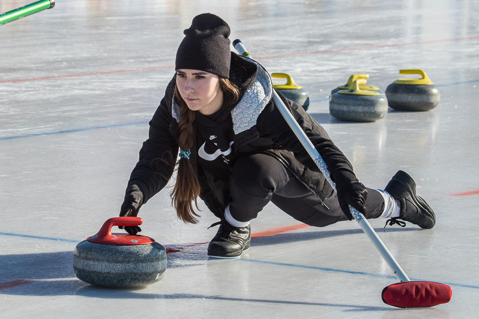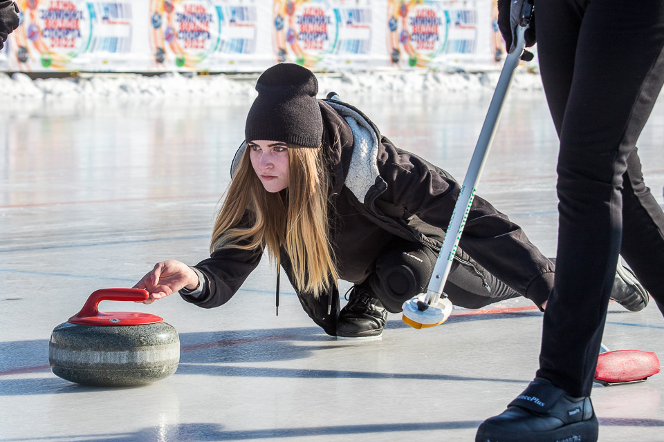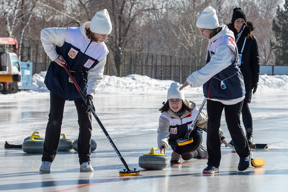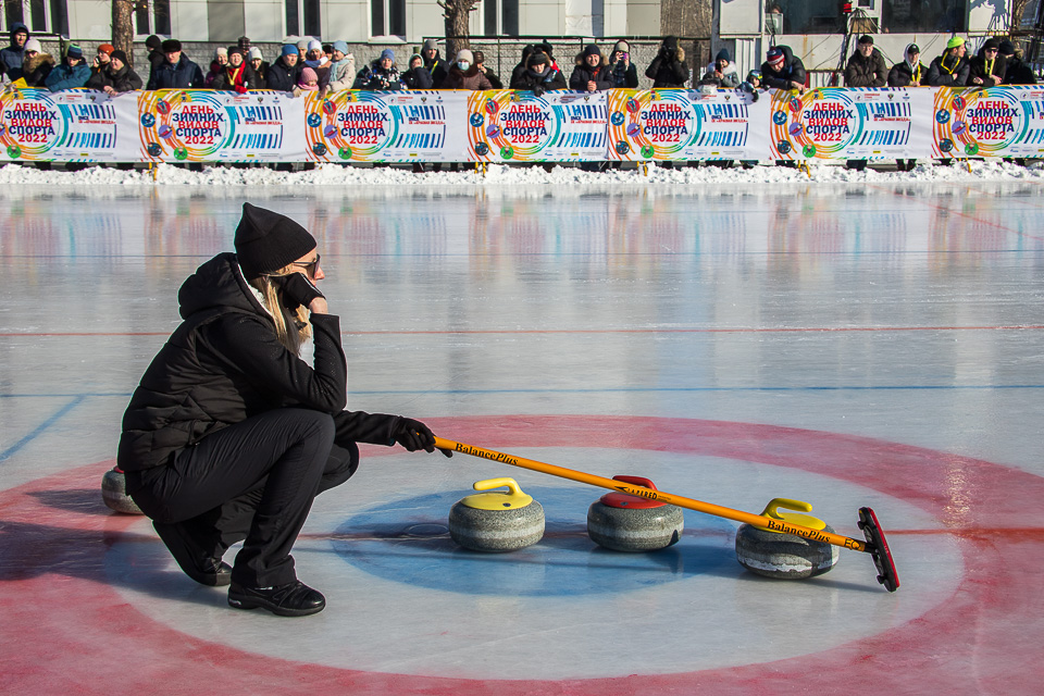 Одновременно с выступлением моржей на катке начали играть в керлинг