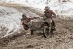 В предстартовом парке идет подготовка к заездам мотоциклов с колясками