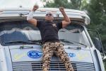 Внезапно появляется грузовик, который умеет вставать на задние колеса