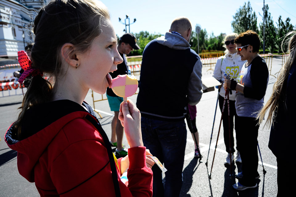 Мороженое от спонсоров для участников массового старта по скандинавской ходьбе