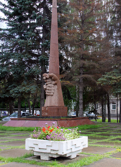 Памятник выполнен из серо-красного гранита. Две руки, сжимающие трехгранный штык, символизируют единство фронта и тыла. На гранях скульптуры выбито: «1941–1945 гг. Никто не забыт, ничто не забыто. Воинам-заводчанам, погибшим в боях за Родину».