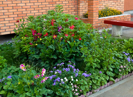 Клумба у дома на бульваре Архитекторов, 8, корпус 1