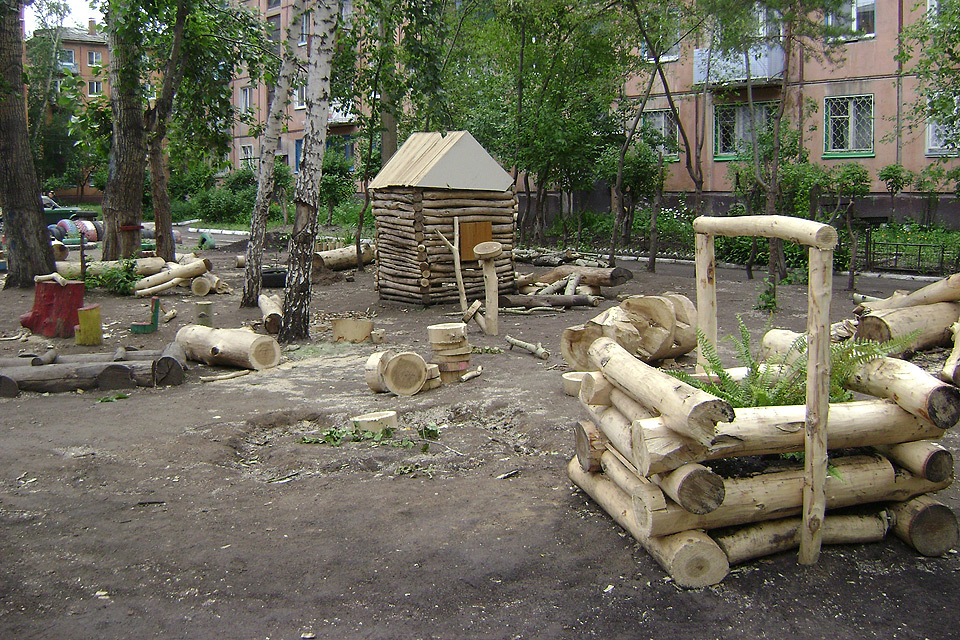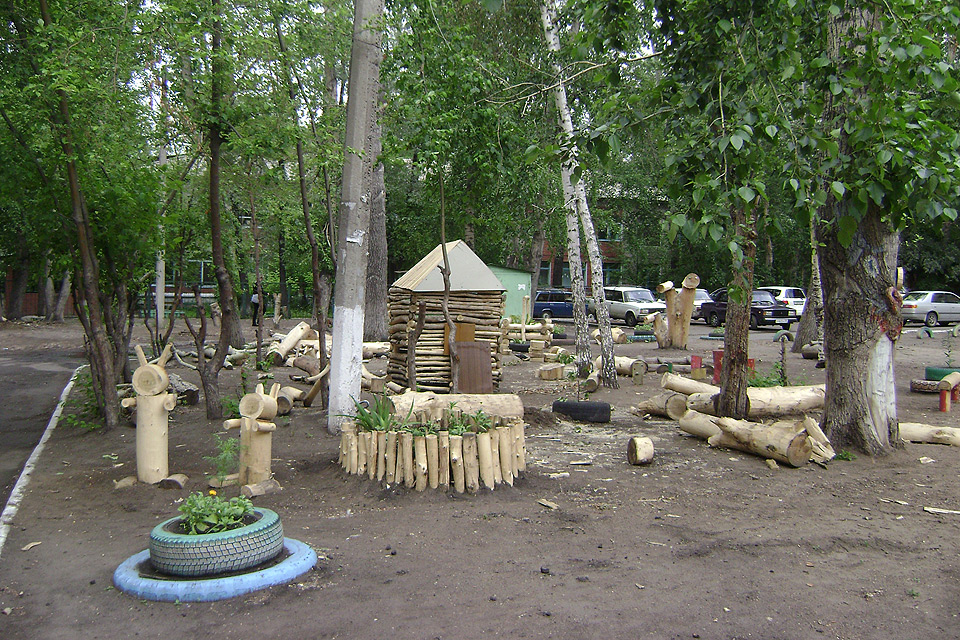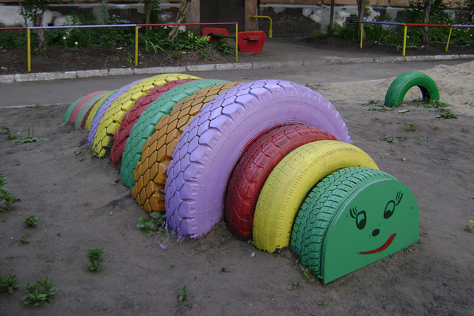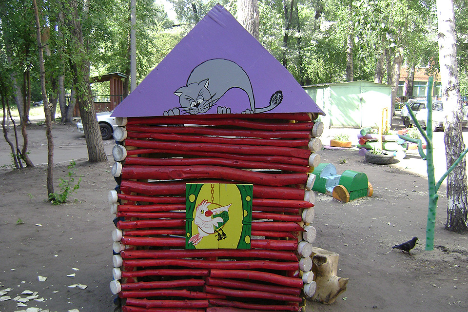 С фантазией подошли жители Космического проспекта к благоустройству своего двора, превратив его в яркий и красочный островок детства.