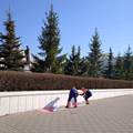 Службы озеленения и благоустройства также убирают мусор и прометают прилегающие территории в мемориальных скверах и вблизи памятников, обновляют лакокрасочное покрытие скамеек, окрашивают парапеты и подпорные стенки, следят за состоянием постаментов.