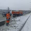 Ежедневно бригада из 25 дорожных рабочих вывозит снег на снежные полигоны с закрепленных территорий мостовых сооружений и подземных переходов, очищает от снега и ледяных образований навесы надземных и подземных переходов, водоотводные устройства на мостах.
