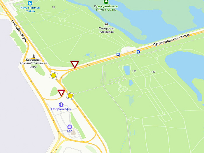 Соответствующие знаки приоритета будут установлены на данной транспортной развязке согласно схеме.