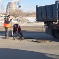 На дорогах Омска для ликвидации ям и выбоин принимаются временные меры
