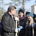 Мэр Вячеслав Двораковский совместно со студентами Омского государственного университета путей сообщений посадил в сквере им. 30-летия ВЛКСМ уникальные для города растения — три скумпии.