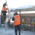Омские дорожники очищают крыши остановочных павильонов от снега