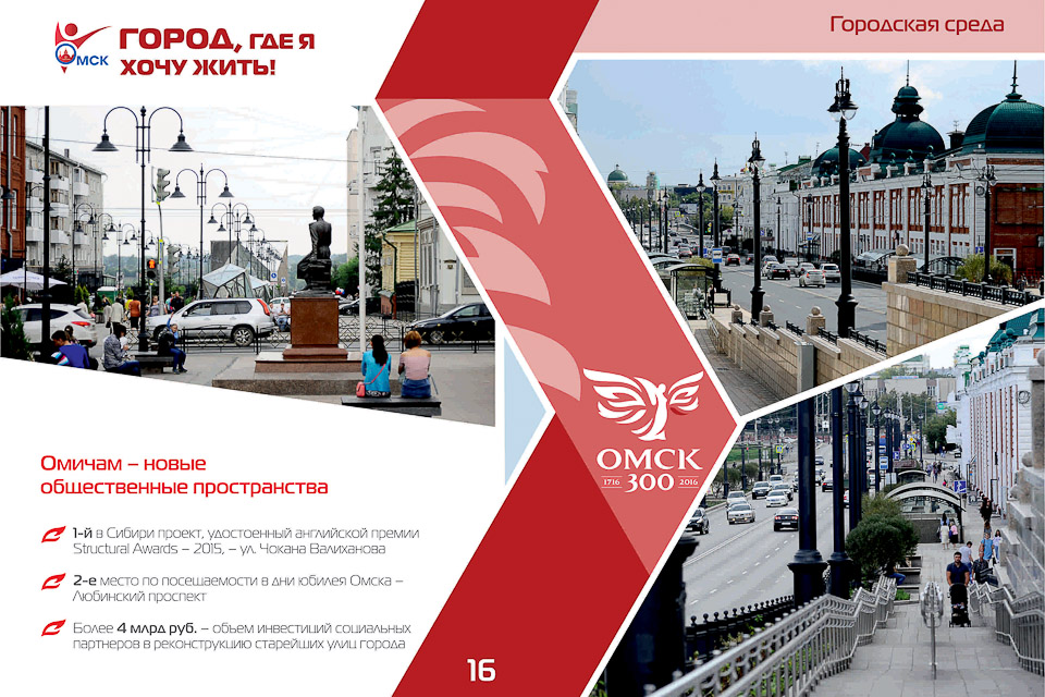 Председатель Омского городского Совета Галина Горст считает, что за последние годы в городе успешно завершен целый ряд важнейших проектов: «Таких темпов позитивных изменений, наверное, не было никогда в новейшей истории Омска. Масштабное строительство школ, детских садов, объектов дорожной и инженерной инфраструктуры, домов для нуждающихся в улучшении жилищных условий, спортивных объектов, благоустройство улиц, парков, скверов и многое другое — все это сделано на наших глазах за последние три — четыре года. Этого мы добились благодаря консолидации усилий всех уровней власти, бизнеса, общественников».