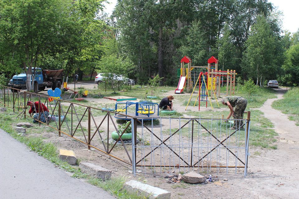 К 300-летию города Омска жители дома № 24 по улице Пархоменко Максим Михайлович Андреев и Василий Федорович Пасиченко на личные средства изготовили и своими силами установили ограждение для детской площадки.