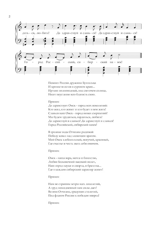Так накануне юбилея Омска появилась песня «Омск — город всех поколений». «Омск – наша вера, мечта и богатство, Любви бесконечной высокий полет, Наш город науки, и спорта, и братства, Где в каждом сибирский характер живет!» Эти строки из припева как нельзя лучше передают отношение омичей к своей родине.