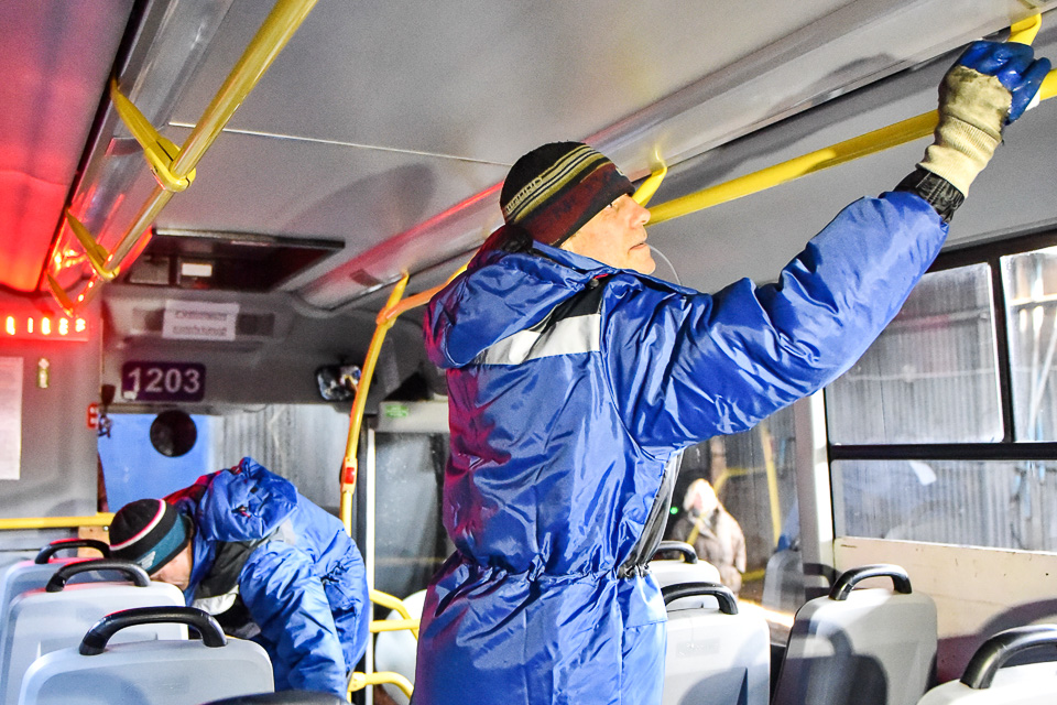 В автобусах, трамваях и троллейбусах в обязательном порядке соблюдается ежедневный режим уборки салона с использованием дезинфицирующих средств, проводится проветривание подвижного состава после каждого рейса.