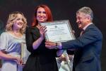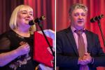 От лица мэра поздравляет Олег Федоренко, от лица спикера горсовета — Светлана Студеникина