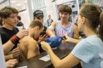 Из-за дождя воскресные соревнования первого отборочного этапа на звание сильнейшего атлета города прошли в маленьком тренировочном зале — что, впрочем, не помешало спортсменам продемонстрировать свои способности в азартной борьбе.