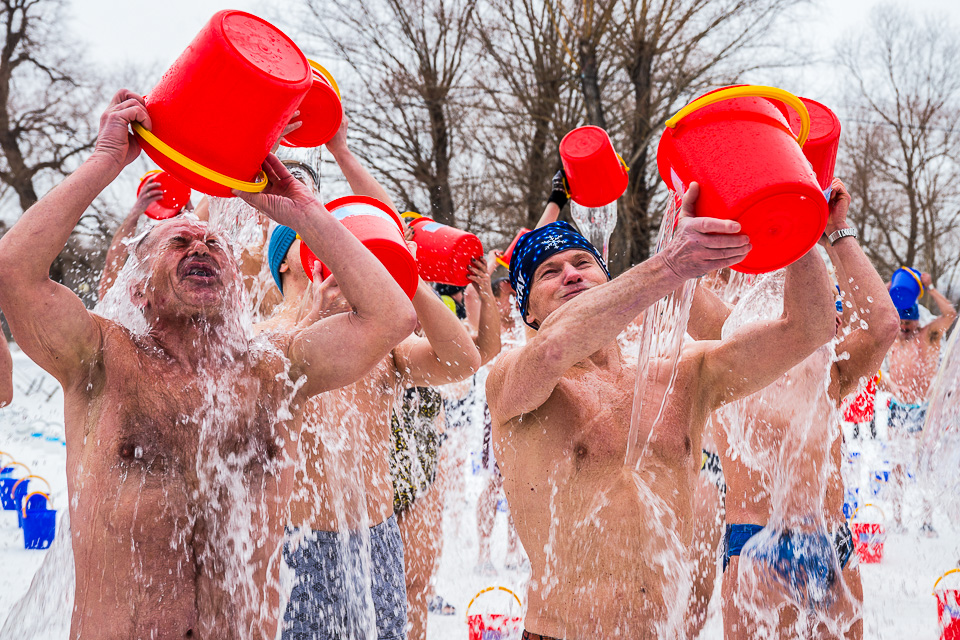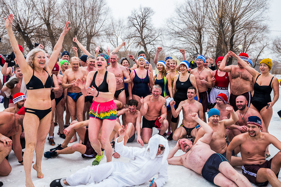 Ставшая традиционной акция «Пробуждение» вновь собрала десятки любителей закаливания. По команде Евгения Житнова, руководителя клуба «Моржи», они одновременно опрокинули на себя ведра с холодной водой, таким образом символично прощаясь с зимой и заряжаясь весенней бодростью.