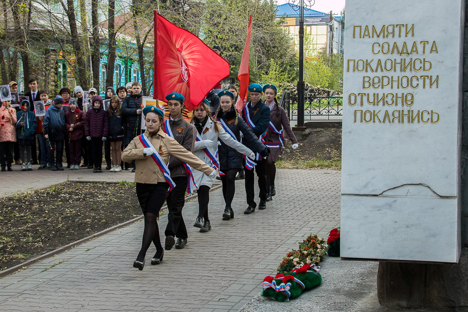 Необычную предпраздничную программу к 9 Мая представили омское отделение военно-исторического клуба «Наследие», КДЦ «Иртыш» и студия «Скворечник»: после митинга у стелы погибшим на войне выпускникам и учащимся школы № 37 во дворе старинных слободских домов по улице Почтовой прошел камерный театрализованный концерт «Встречай Победу».