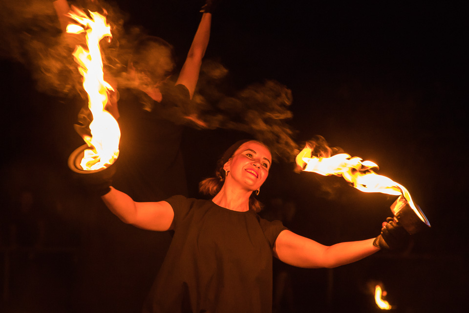 Этническое шоу Театра огня «Гало» стало ярким завершением субботней праздничной программы на территории Омской крепости.