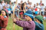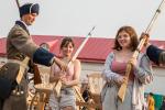 Восхищенные гости фестиваля аплодируют участникам реконструкции
