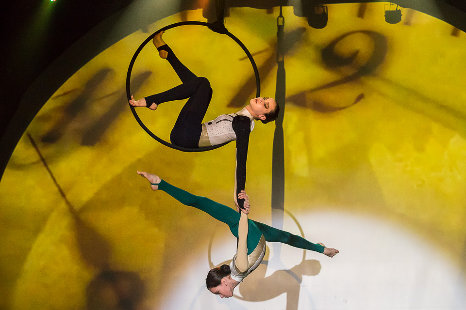 Девушки в этом номере — словно маленькие стрелки гигантских часов