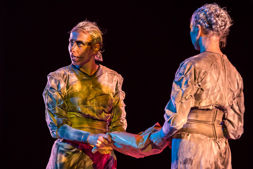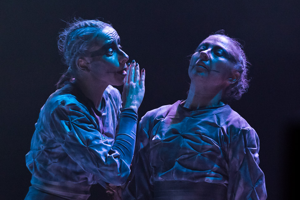 По сюжету два мифических существа делятся с миром простыми и всегда актуальными истинами. Народные сказки в их исполнении звучат целиком, будто читаются прямо из книги: это и слова автора, и прямая речь персонажей. При этом пластика, мимика, интонации рассказчиц ни на секунду не дают оторваться от происходящего на сцене, с головой погружая зрителей в магию театрального искусства.