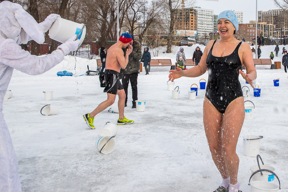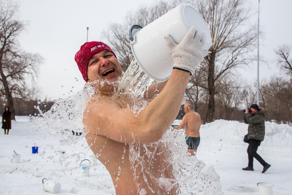 Встретить весну и остаться сухими? Это немыслимо для активных участников клуба закаливания и зимнего плавания «Омские моржи»! Ежегодная акция по массовому обливанию холодной водой вновь состоялась в парке «Зеленый остров».