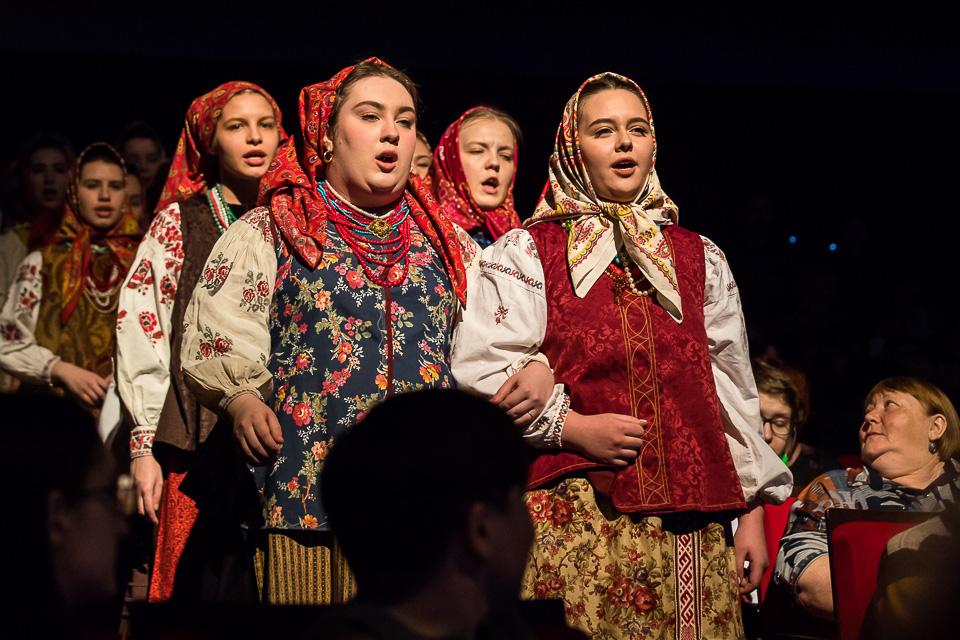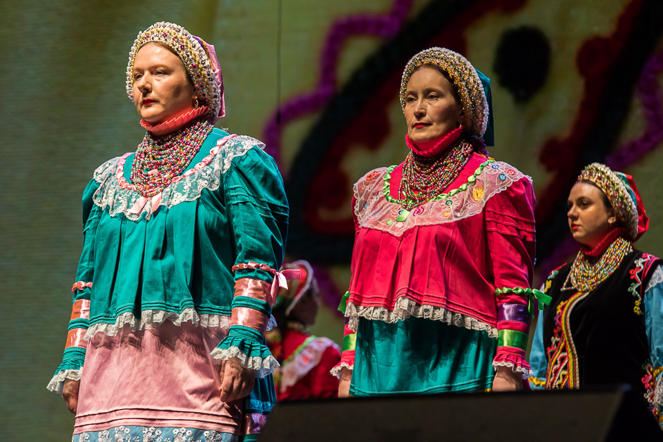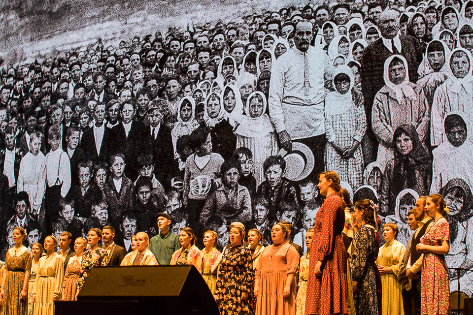 Финальная часть представления — песни канадских духоборов: зал может подпевать