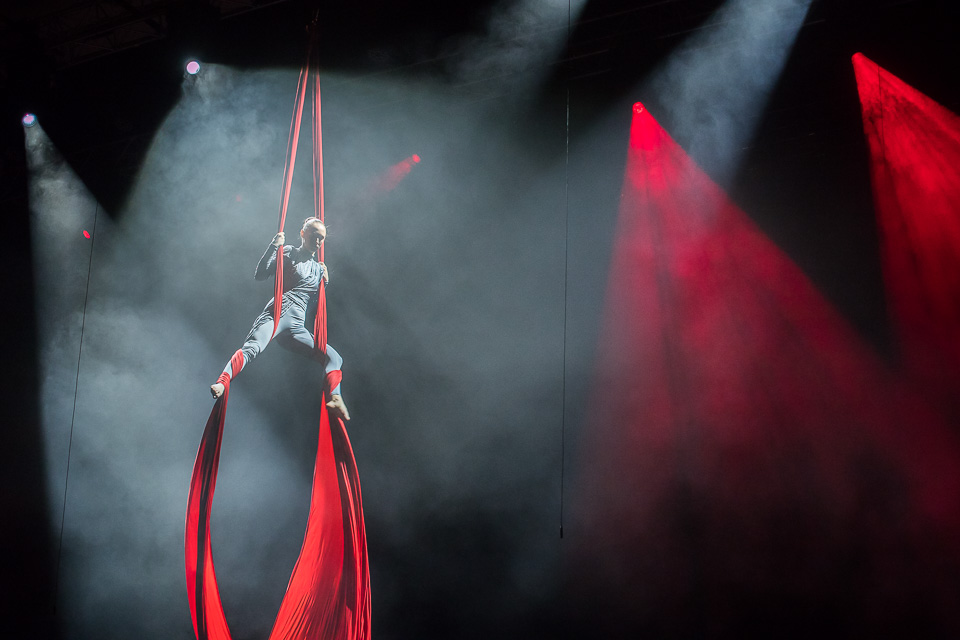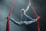 На полотнах — омская воздушная гимнастка Софья Викулова