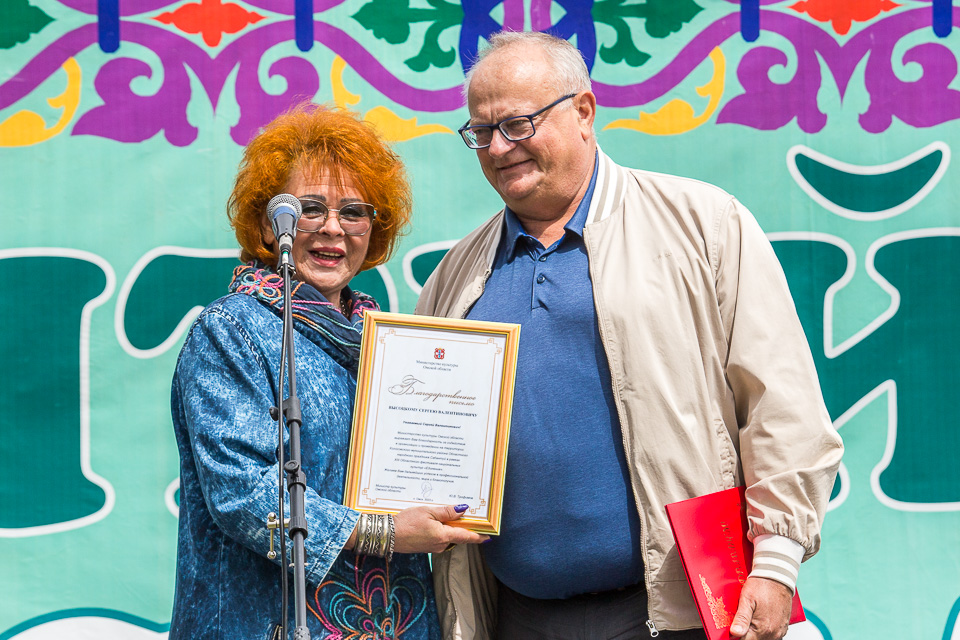 На сцене — директор Дома дружбы Наталья Степанова и глава района Сергей Высоцкий