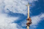 Смельчаков ждет шест такой высоты, что предусмотрена альпинистская страховка