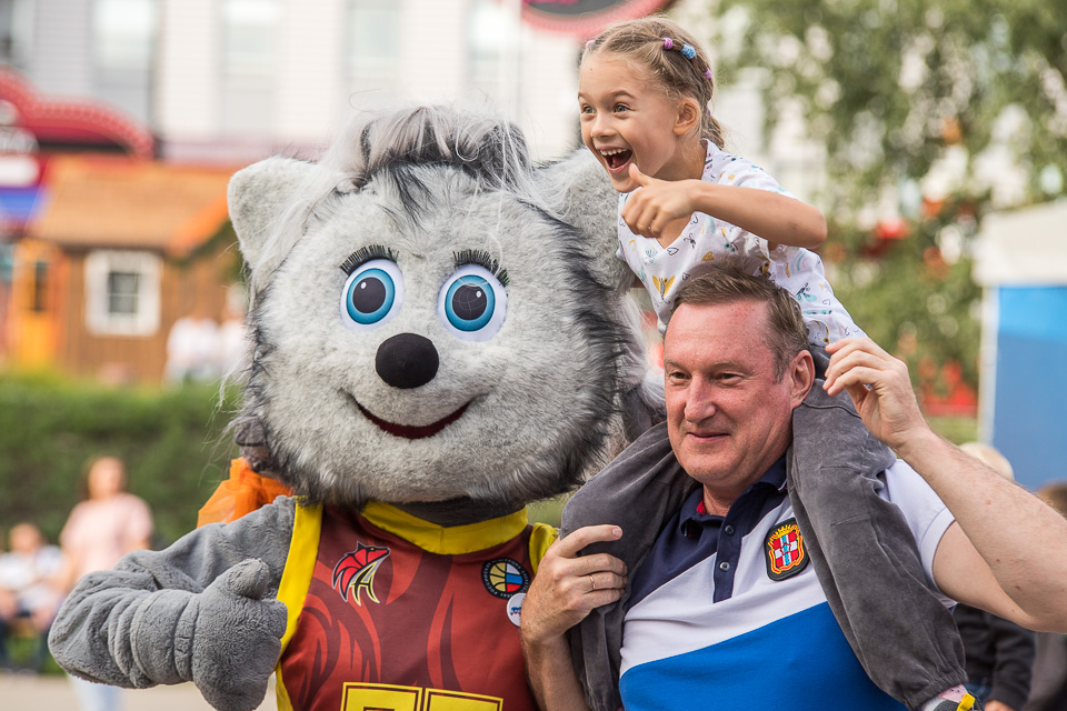 Маскот клуба «Нефтяник» встретил министра спорта региона Дмитрия Крикорьянца