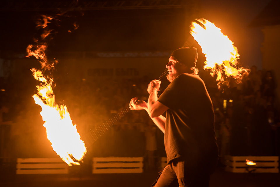 Даже поклонники нечасто видят такой суровый огненный реквизит в руках мастера