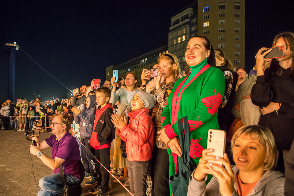 Восхищенные зрители стремятся запечатлеть шоу, чтобы показать друзьям