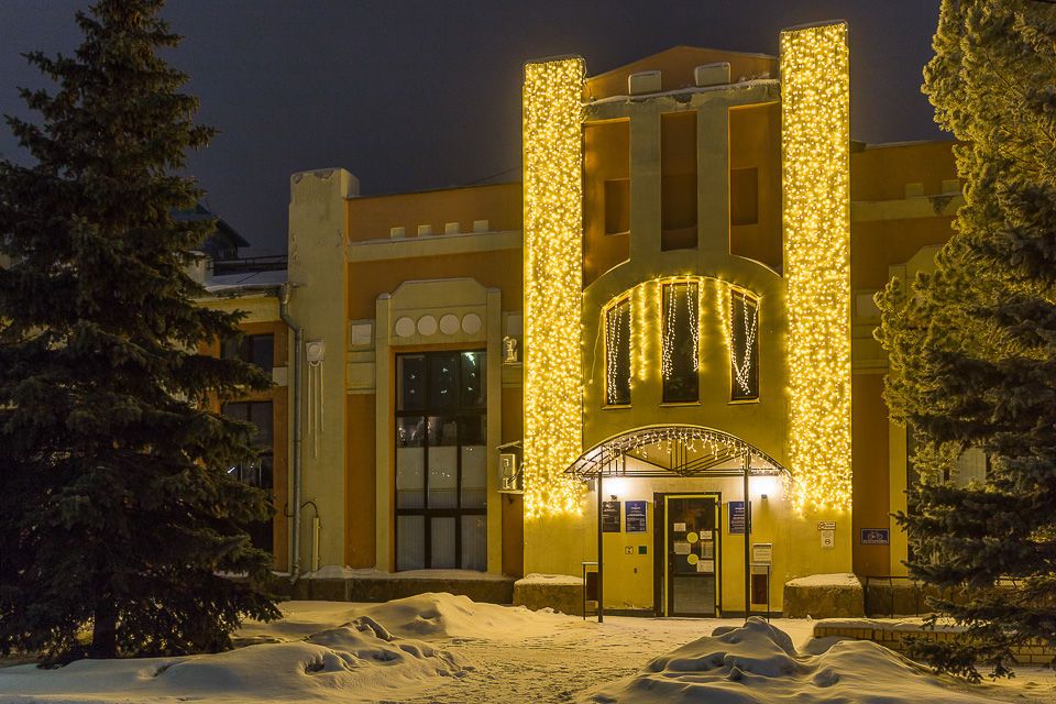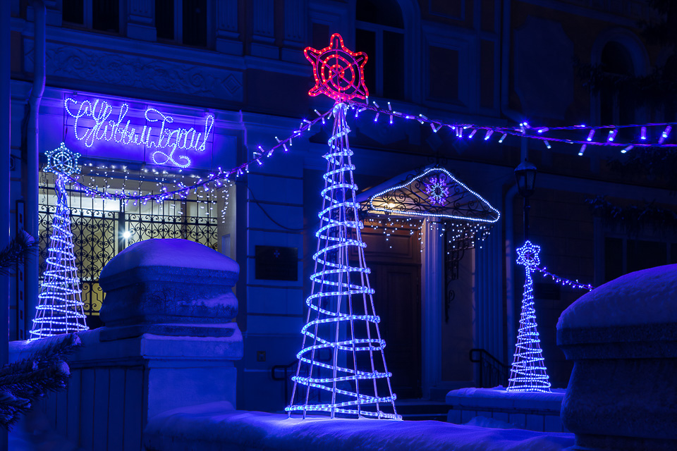 Лаконичные гирлянды очень идут старинному зданию драматического театра