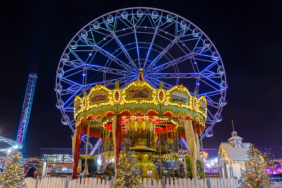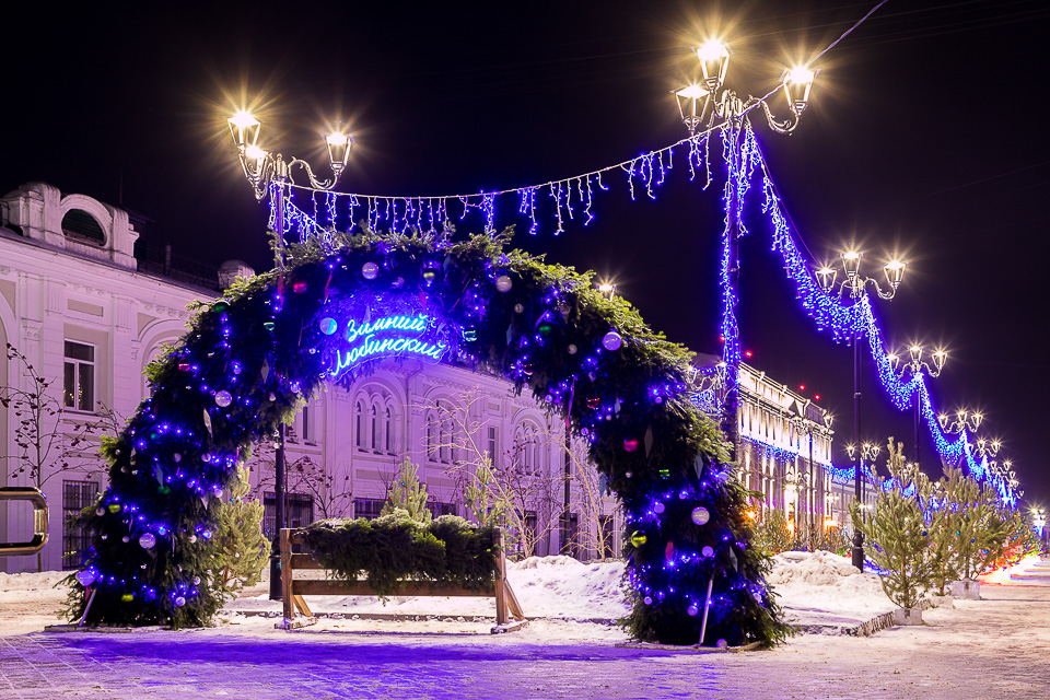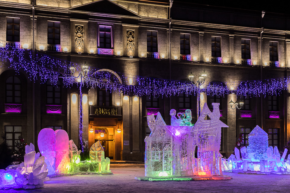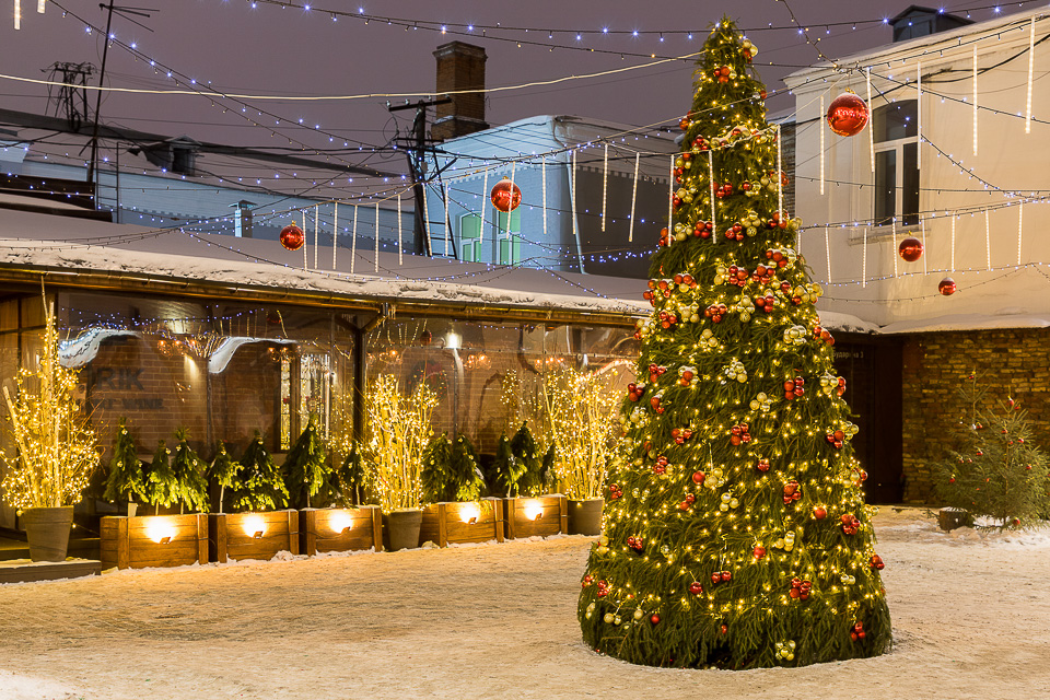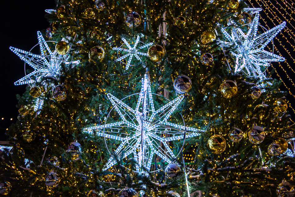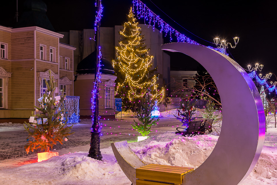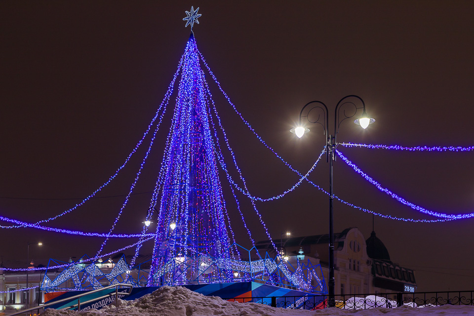 Зимой рано темнеет, но все центральные площади переливаются яркими огоньками