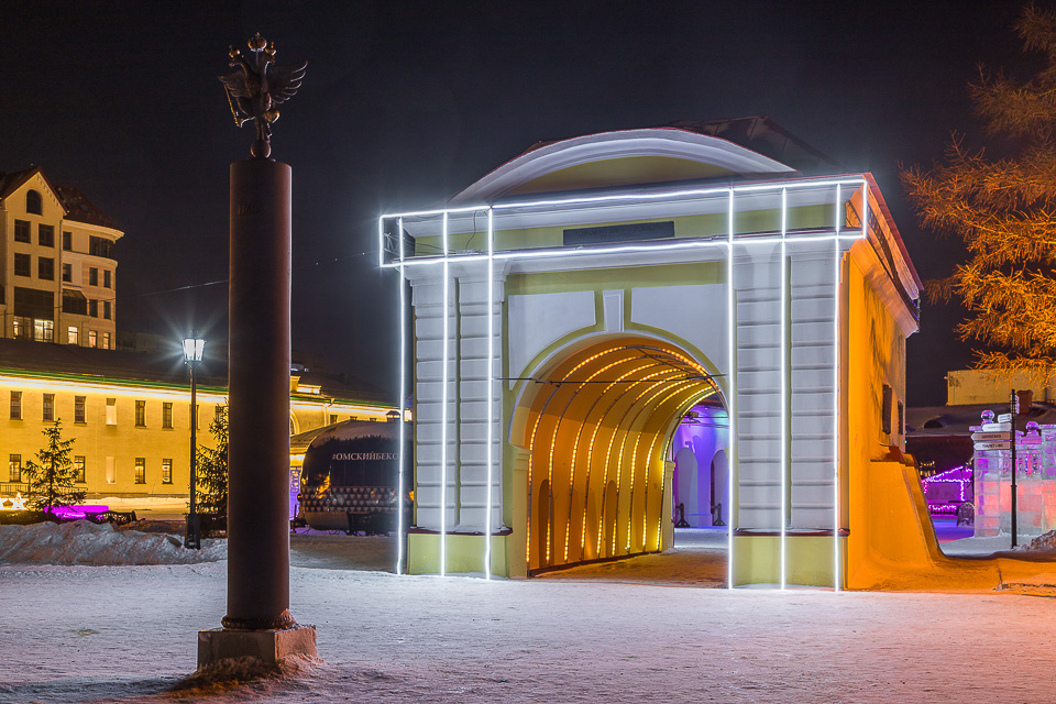Доминанта сквера у Оми — праздничная инсталляция омского нефтезавода