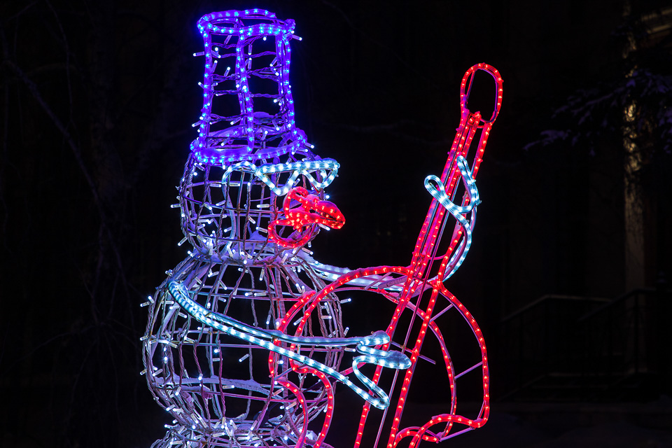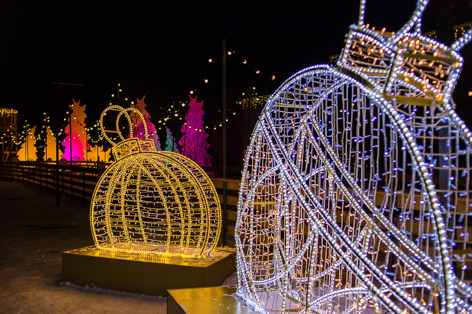 Гуляя, можно разглядывать детали новогодних световых конструкций