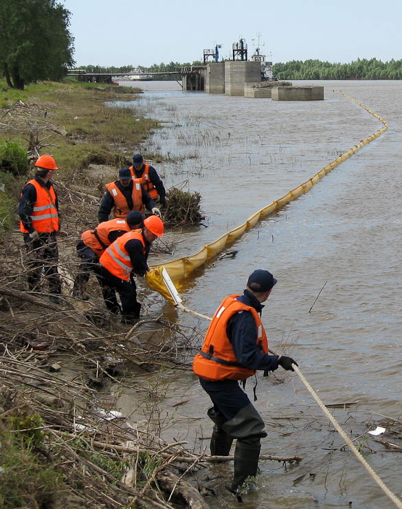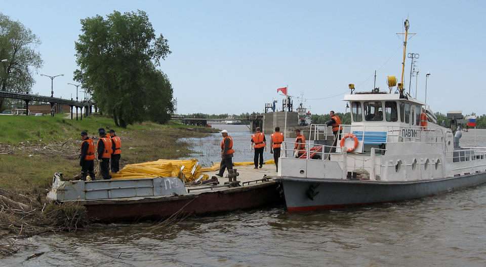 Спасательные службы предприятия отработали два сценария развития аварийной ситуации: выход химически активных веществ из нефтеналивного резервуара и их разлив в акваторию реки Иртыш.
