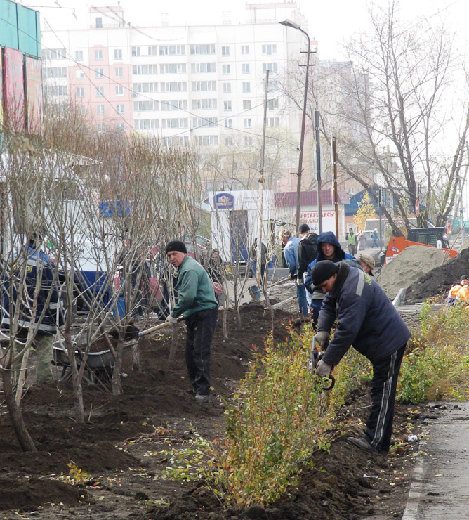 Проведены комплексные работы по благоустройству территории — от озеленения придорожной части до высадки крупномерных деревьев.