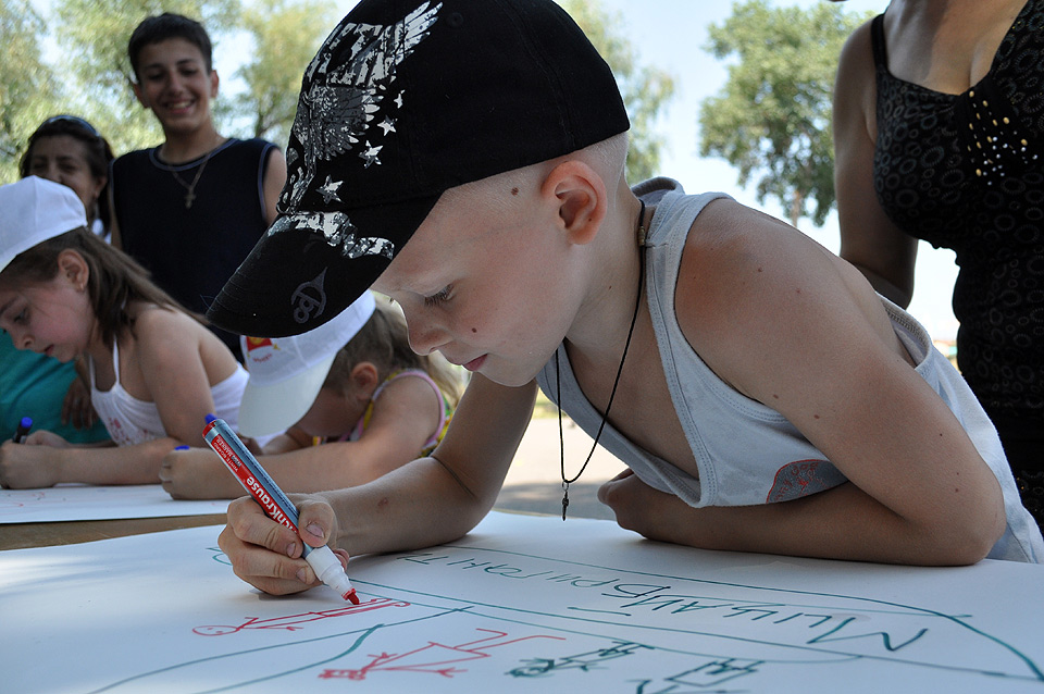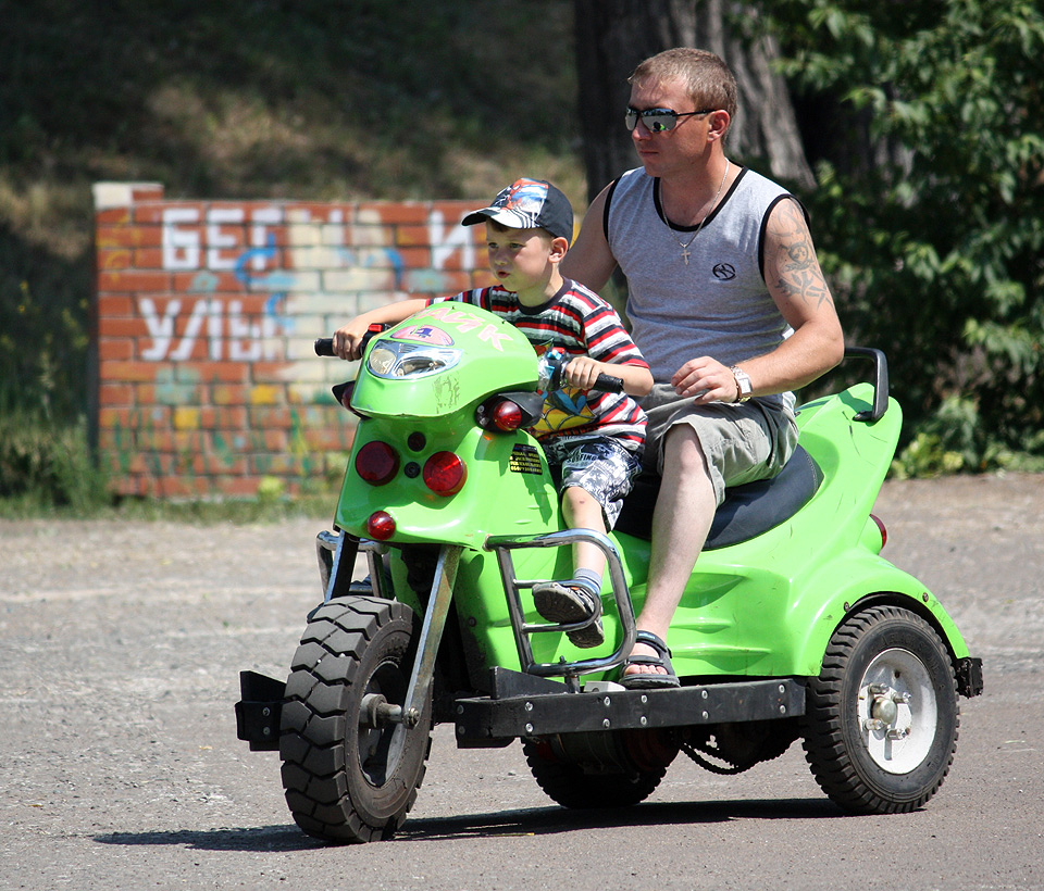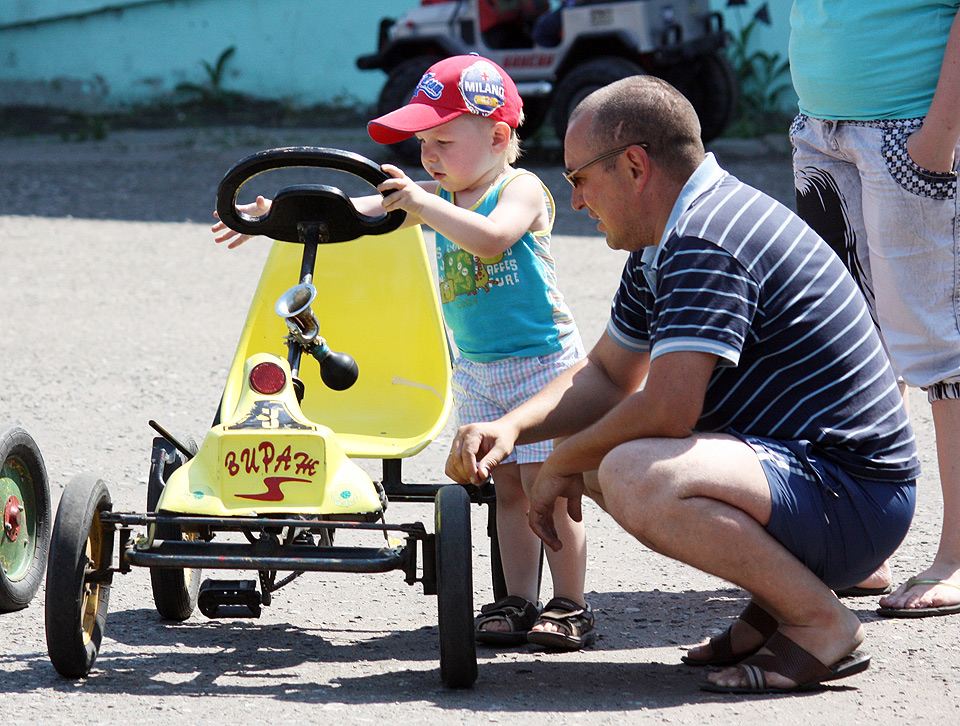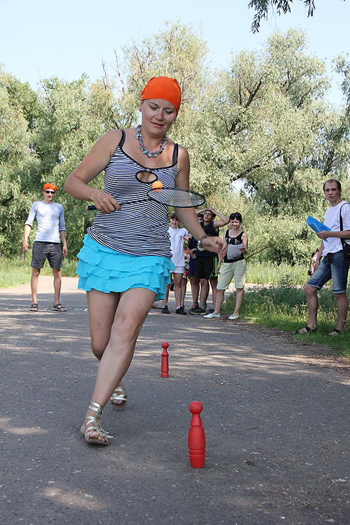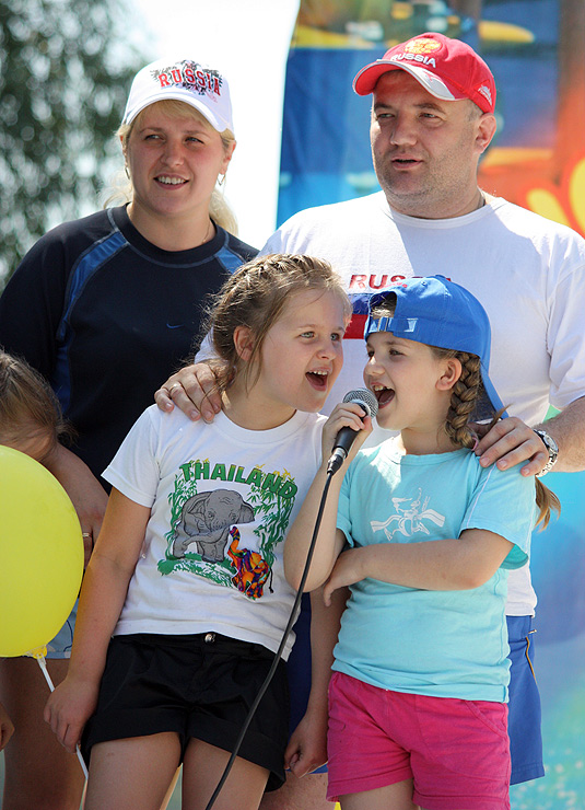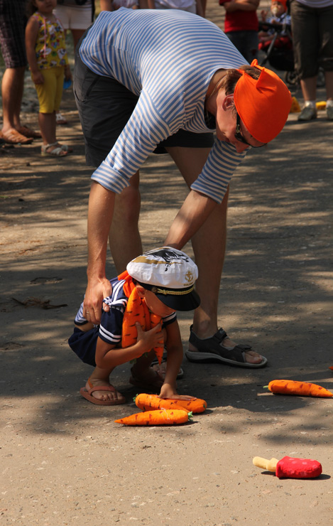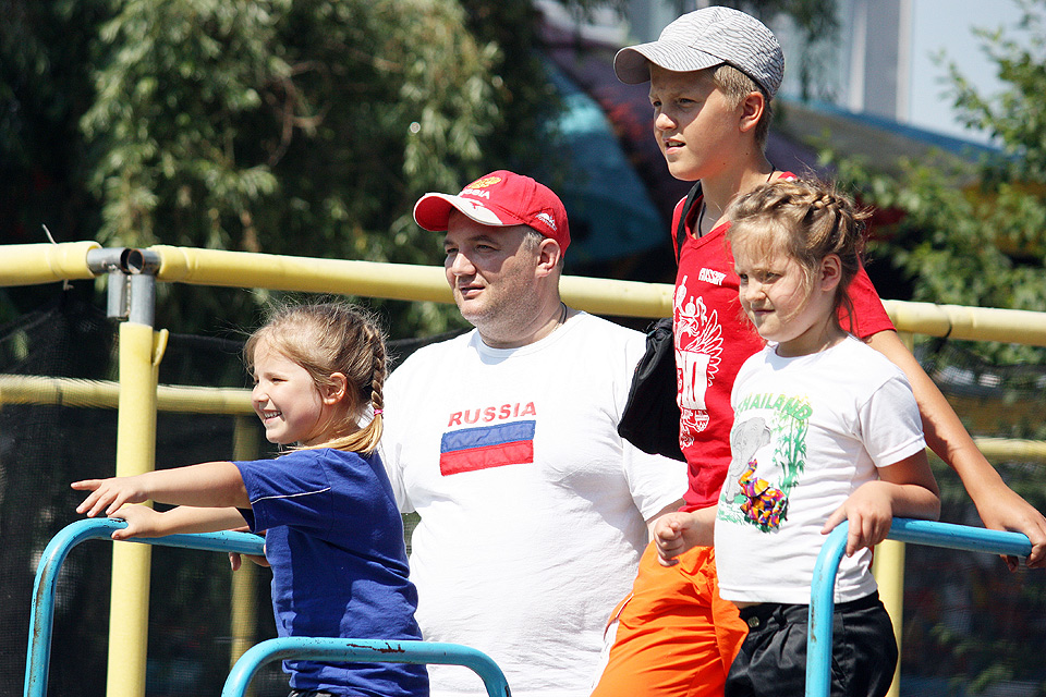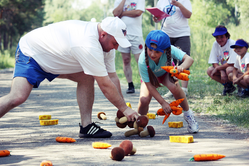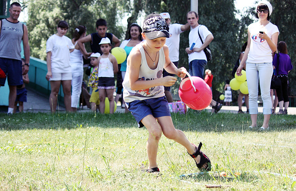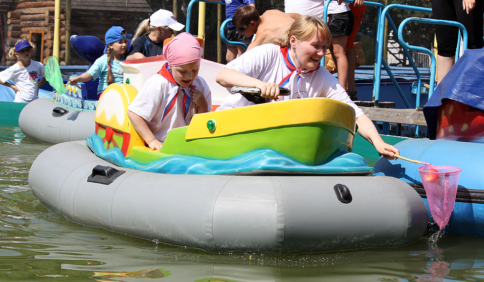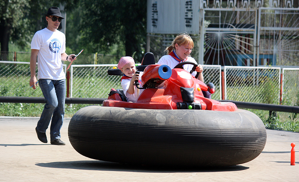 Родители с детьми участвовали в весёлых эстафетах, подвижных играх, пели и танцевали. Были задействованы и игровые комплексы парка «Зелёный остров»: сталкивающиеся автомобили, каркасные лодочки, аттракцион «Челленджер». В итоге получился отличный пример того, как можно организовать активный отдых на природе, если у вас есть хорошая компания и много ребятни в возрасте от четырёх до десяти лет.