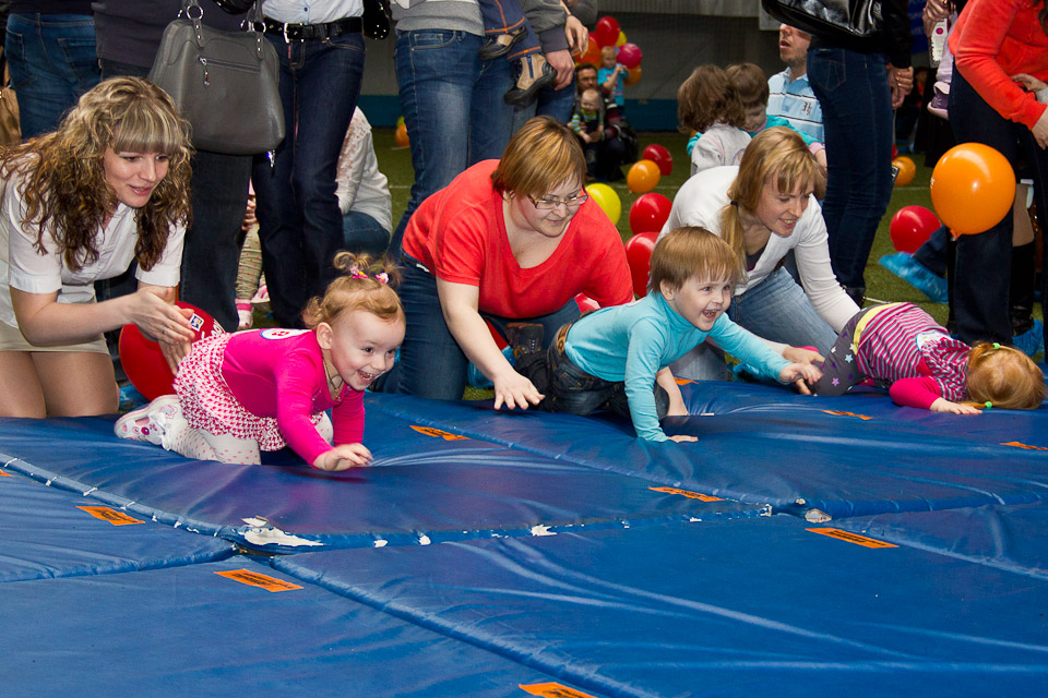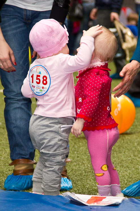 Пока малыши соревнуются в скорости, родители изо всех сил их поддерживают. Взрослым приходится и «запускать» бегунов на старте, и встречать на финише, потому что столь маленькие спринтеры пока не умеют надолго удерживать внимание и могут сойти с дистанции, заинтересовавшись чем-нибудь ярким или необычным за пределами беговой дорожки.