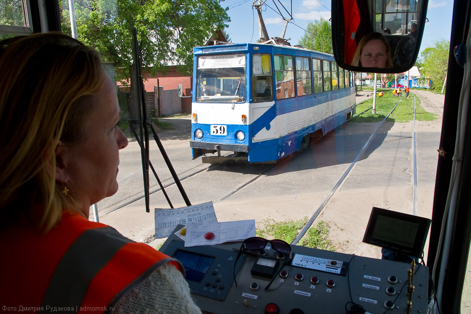 Водитель реконструированной «семёрки» Елена Салиженко до середины 90-х работала медсестрой. Время было непростое, решила переучиться на водителя трамвая и не жалеет, что сменила профессию. Но и сейчас ей, бывает, приходится оказывать первую помощь пассажирам.