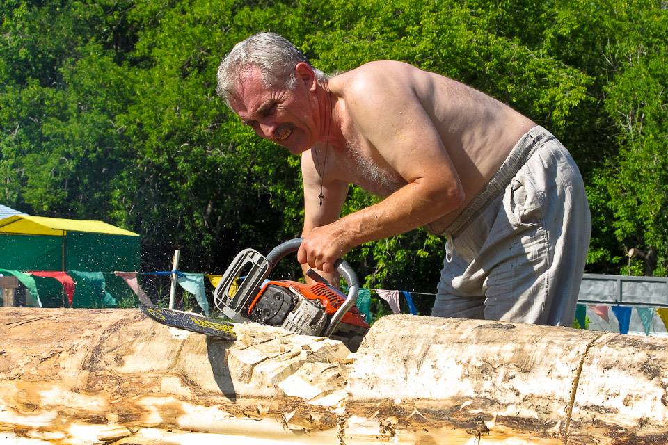 «Праздник топора» собрал резчиков по дереву. Впервые в Омске и области конкурс проводился в таком формате, когда мастера бок о бок работали на одной площадке в течение полутора дней.