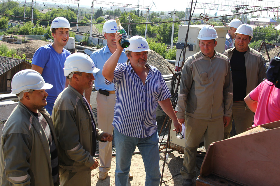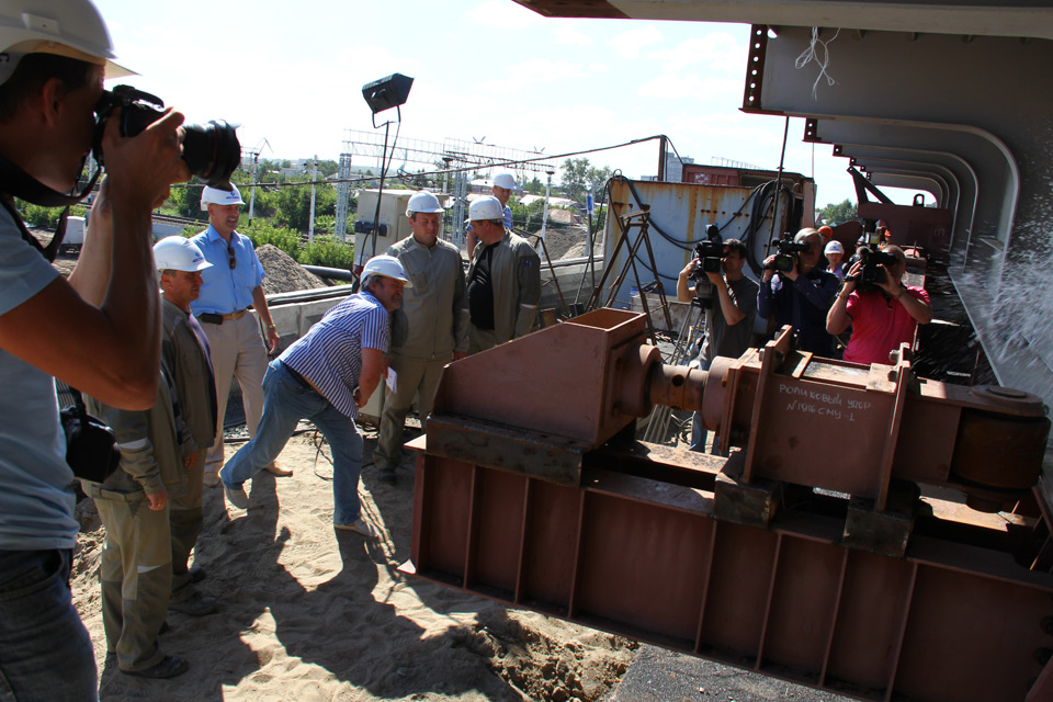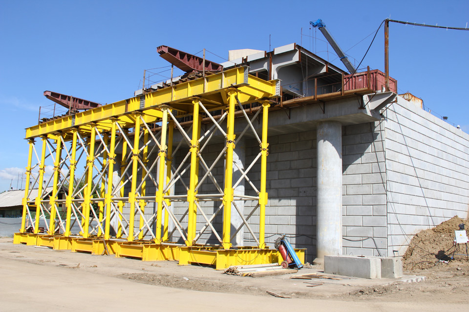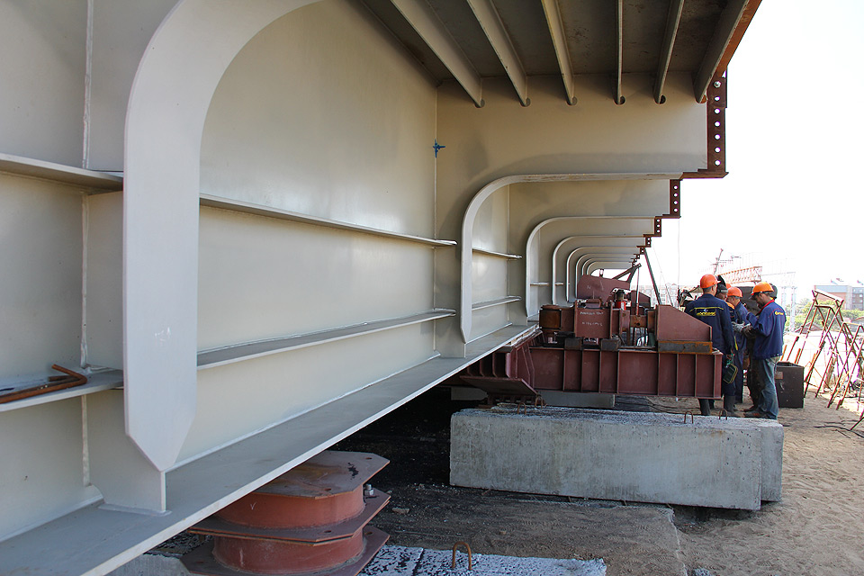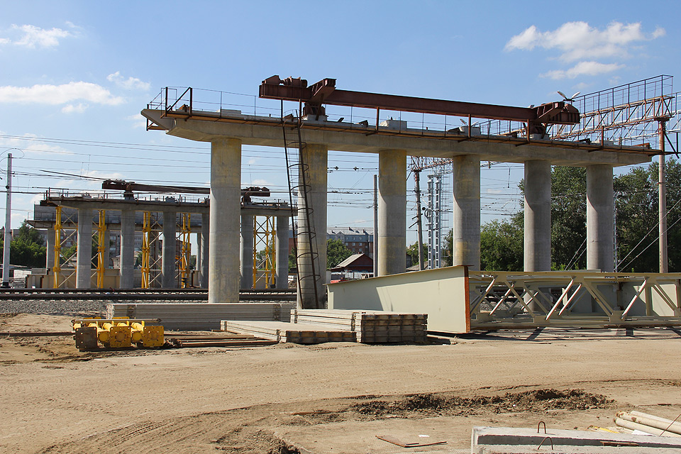 Монтаж пролетного строения путепровода осуществляется методом продольной надвижки. При благоприятных условиях монтажные работы будут продвигаться в среднем на 8 метров в неделю. Всего будет смонтировано 78 металлических балок, чей общий вес превышает 700 тонн.