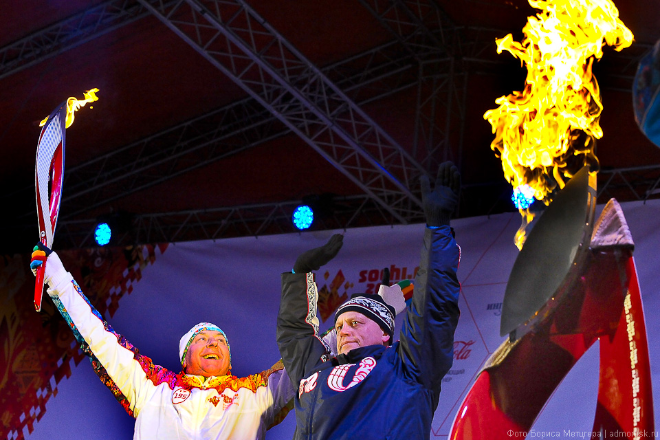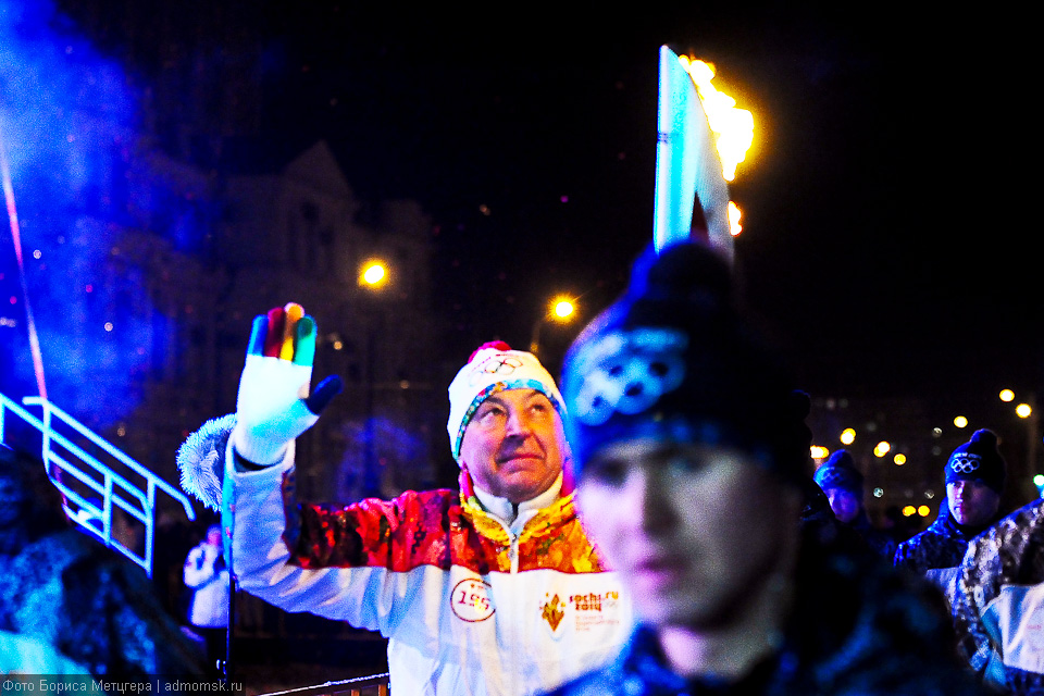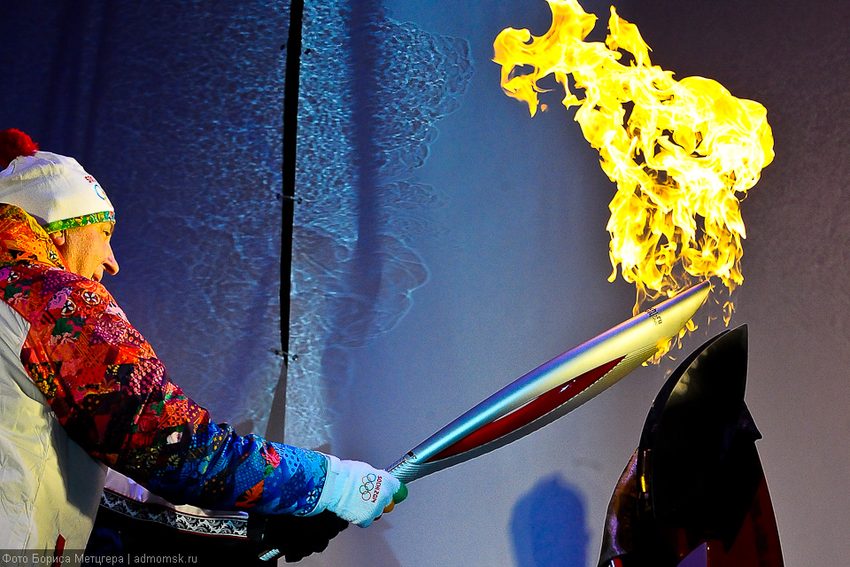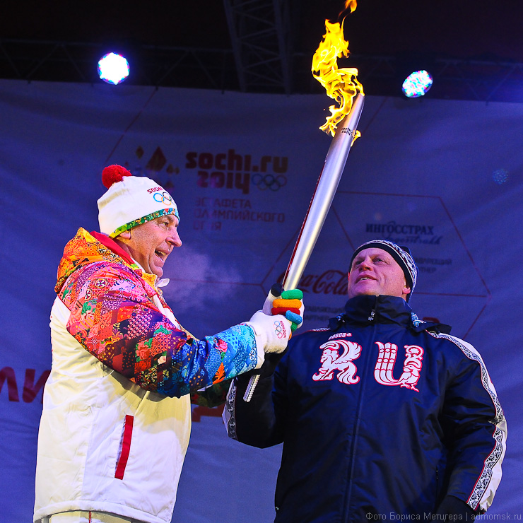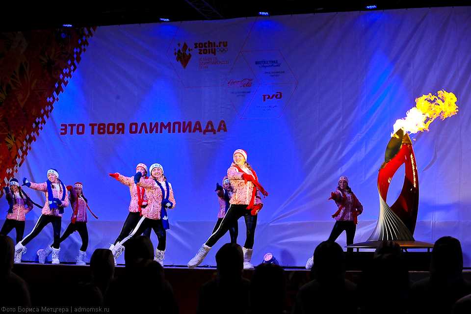 Омский этап эстафеты олимпийского огня XXII зимних Игр финишировал вечером 9 декабря на Соборной площади.