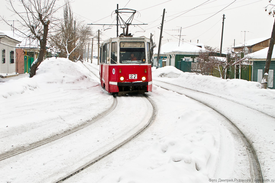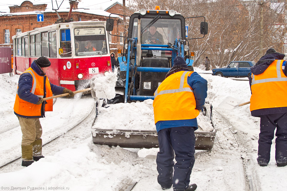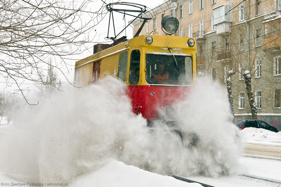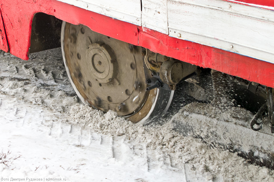 Трамвайные пути постоянно нуждаются во внимании городских служб, но особенно это важно снежной сибирской зимой.