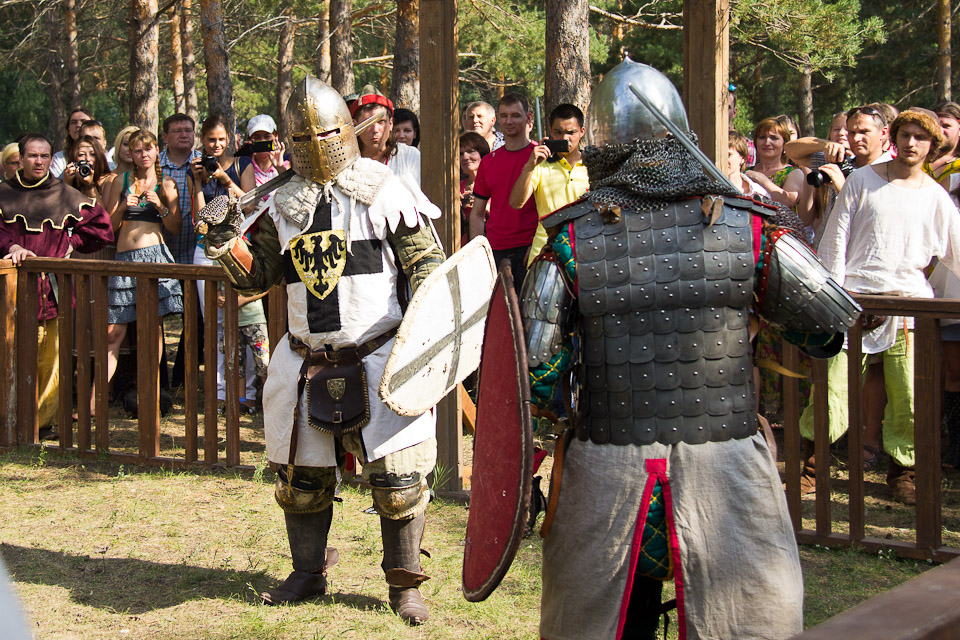 2 и 3 августа на обширной части парка «Зеленый остров» проходят рыцарские поединки, звучит старинная музыка, а еда готовится по рецептам, которым не одна сотня лет.