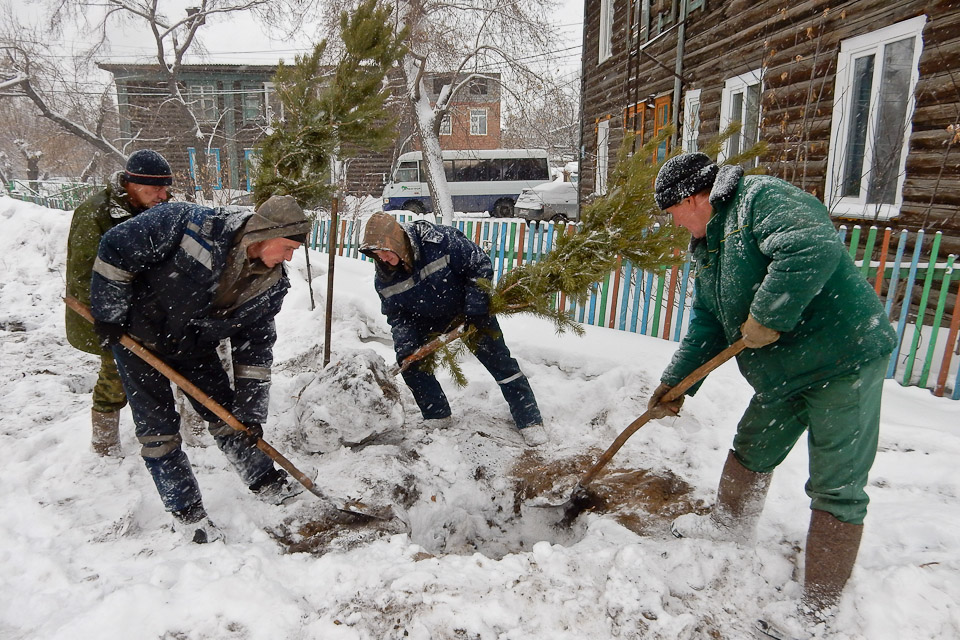 Снег и метель не помеха для сибирских озеленителей