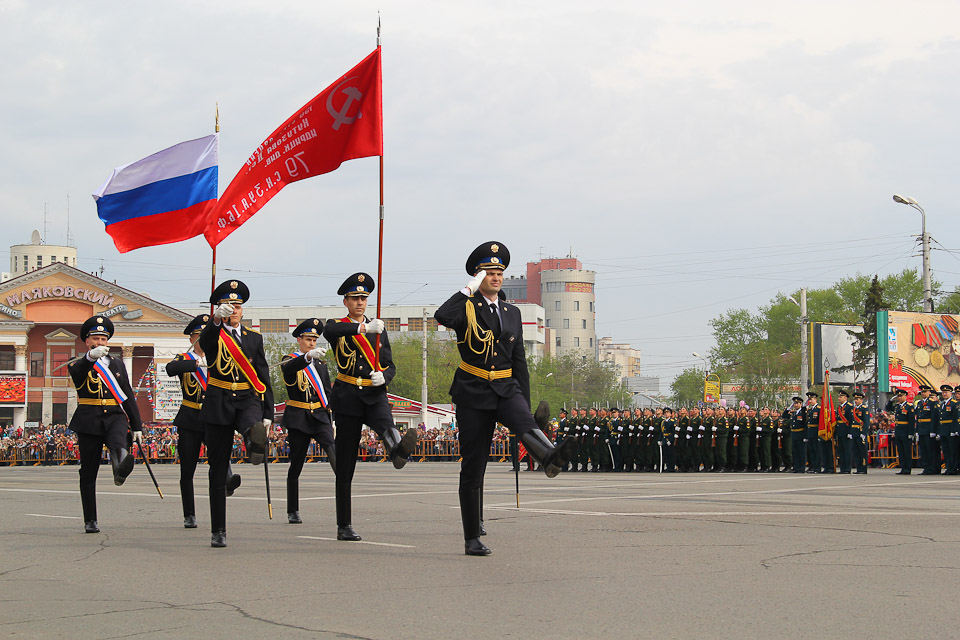 Парад Победы прошел с небывалым размахом и торжественностью. За происходящим наблюдали десятки тысяч омичей. Главными героями мероприятия стали ветераны Великой Отечественной войны: часть из них наблюдали за парадом с трибуны, а некоторые приветствовали омичей из проезжающих по площади автомобилей. Зрители стали свидетелями показательного выступления десантных войск, проезда техники военного времени, услышали исполнение строевой песни.